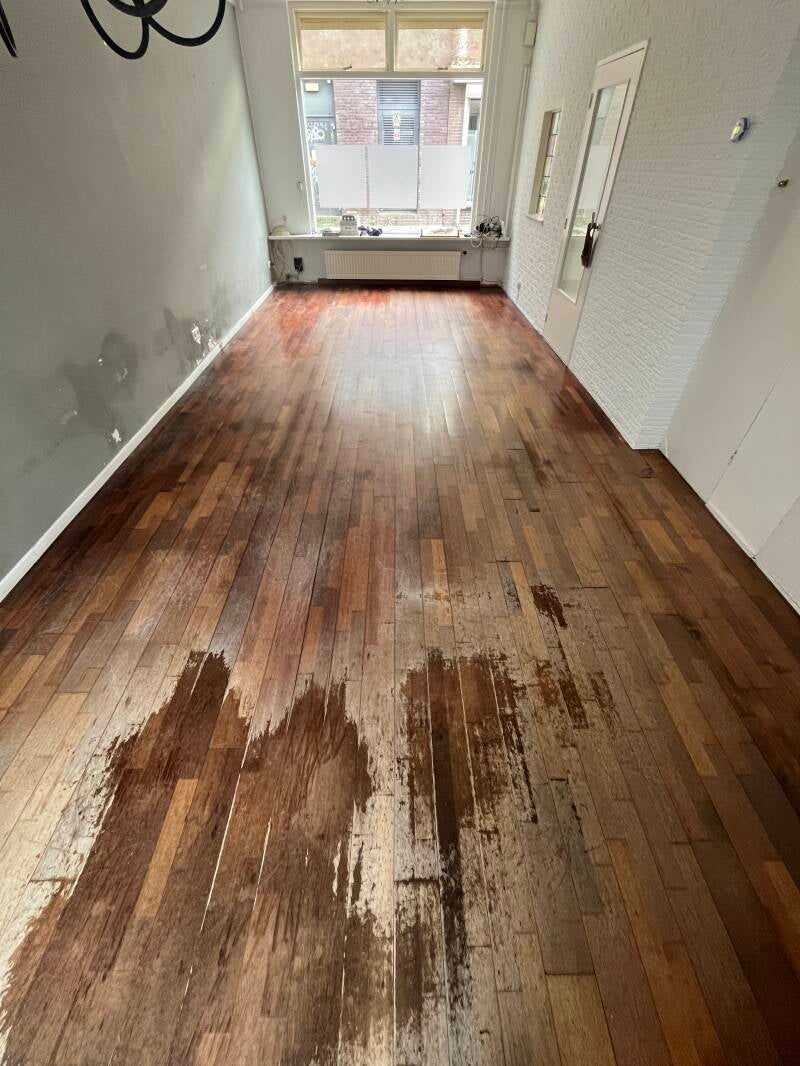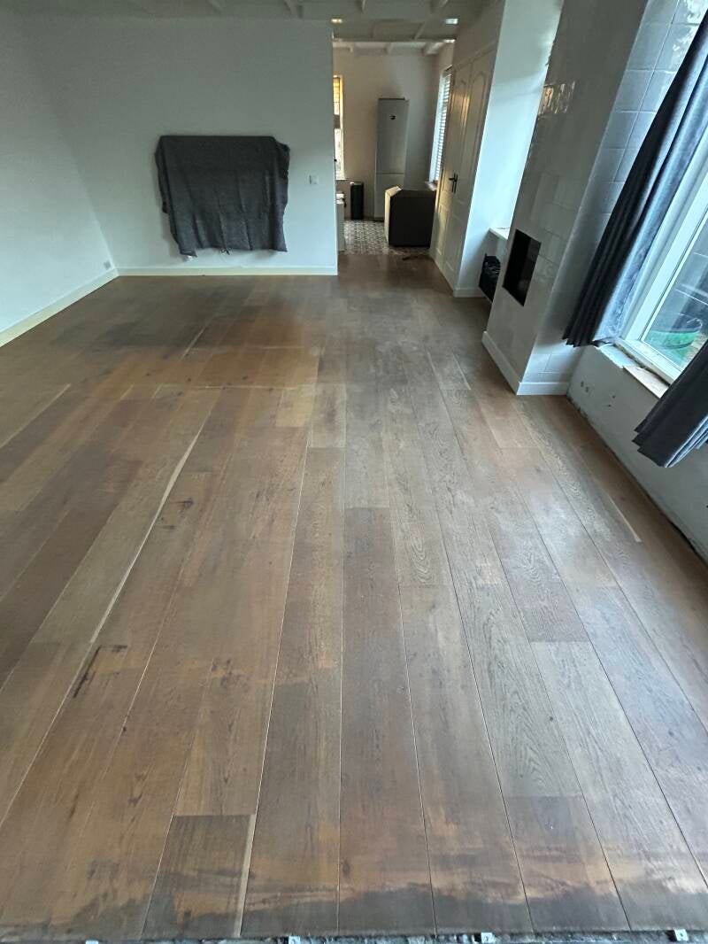 Renovatie en waterschade reparatie houten vloer Tilburg schuren en naturel olie.