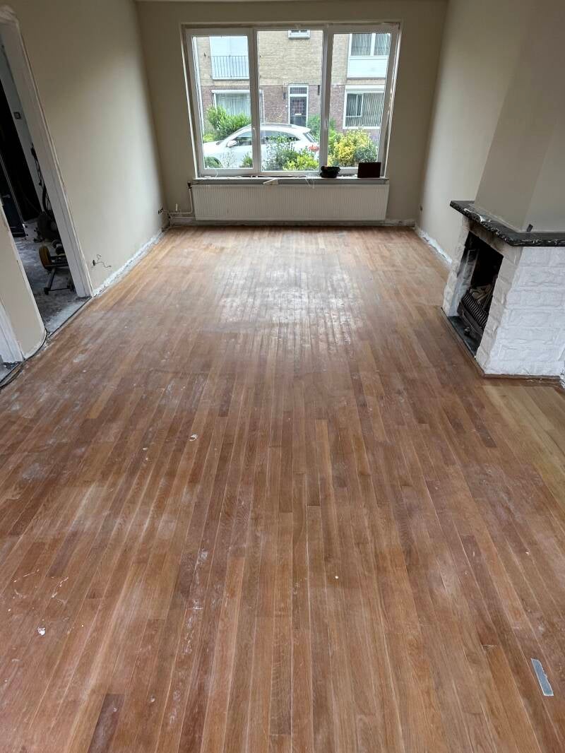 Eiken vloer renovatie Rotterdam schuren en blanke olie.