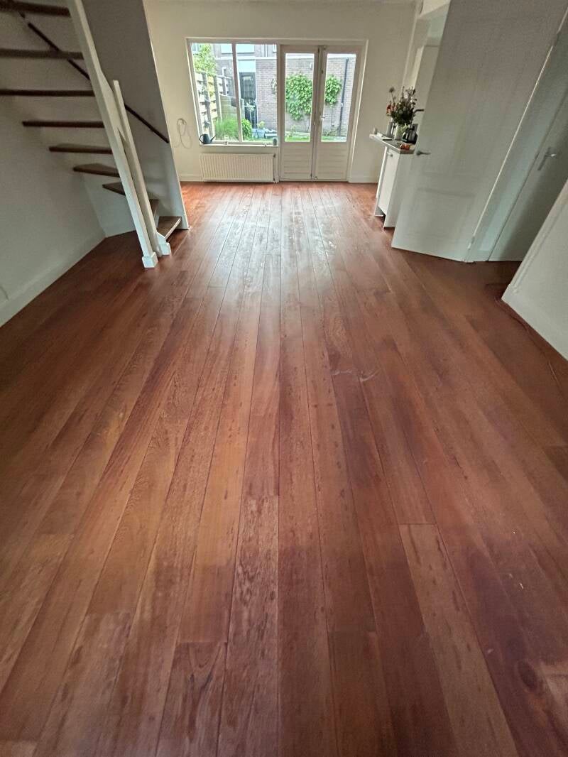Tropisch houten vloer renovatie Breda schuren en oliën.