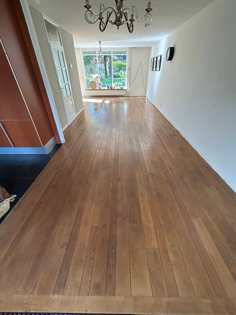 Eiken vloer renovatie Maastricht schuren en blanke olie.