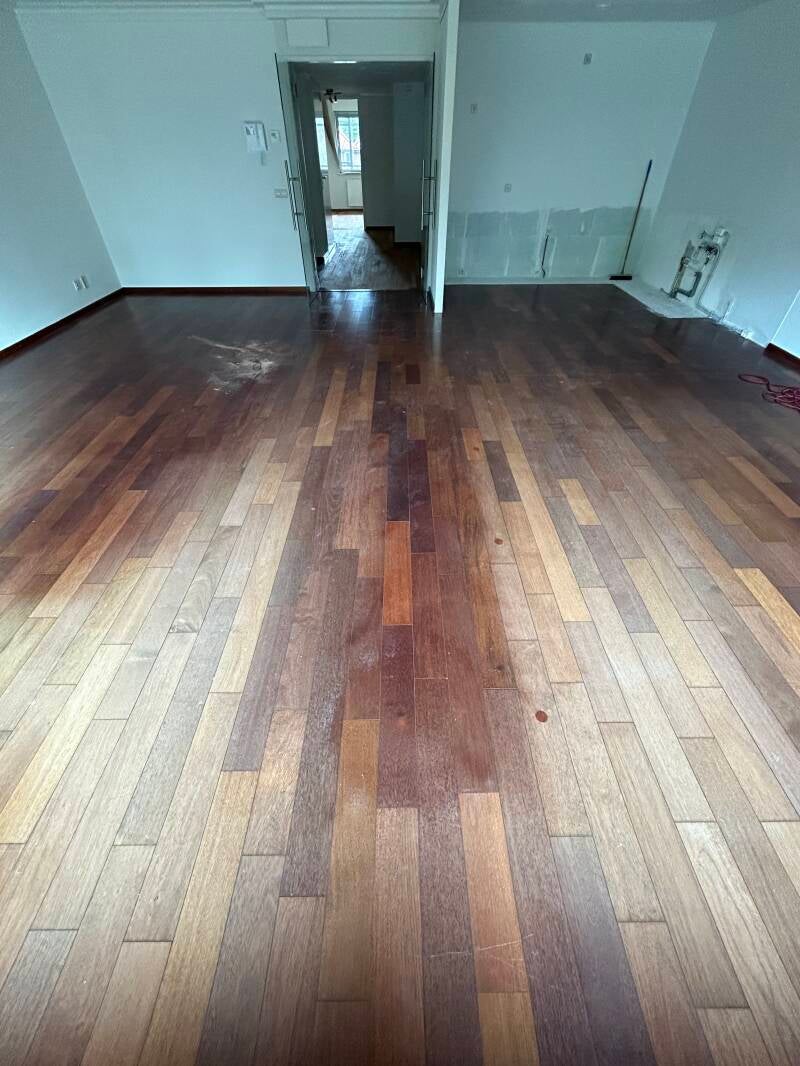 Mahonie houten vloeren renovatie Tilburg schuren en naturel olie.