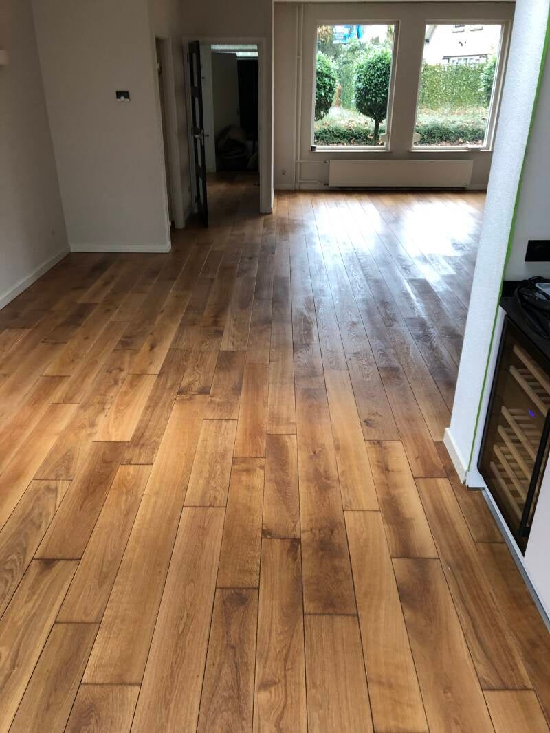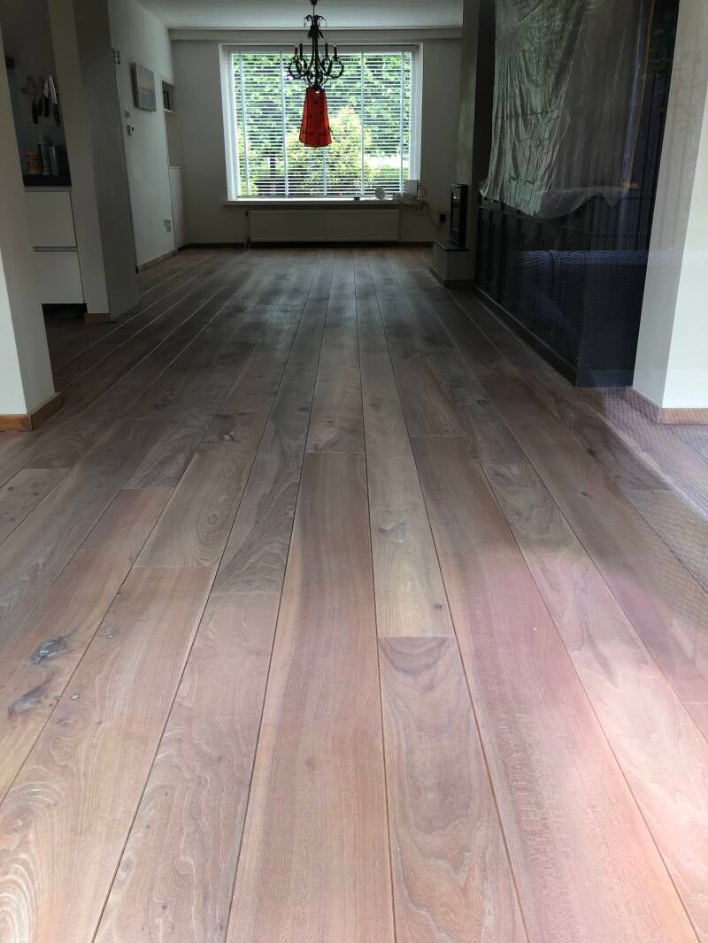 Eiken houten vloer renovatie Tilburg schuren en naturel white lak.